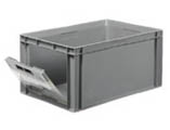 Для этого отдельного ряда евроконтейнеров предусмотрены скользящие панели, или шарнирные откидывающиеся крышки на длинной или на короткой стороне, а также удобные ручки. Эти контейнеры имеют различные внутренние размеры для максимальной загрузки, а также специально отведенные места для логотипов стандарта Odette. Кроме того, они совместимы с системами стандартов VDA и Евро. Наличие сдвижных панелей, или шарнирных откидывающихся крышек позволяет класть и извлекать товар без смещения евроконтейнера с о штабеля.